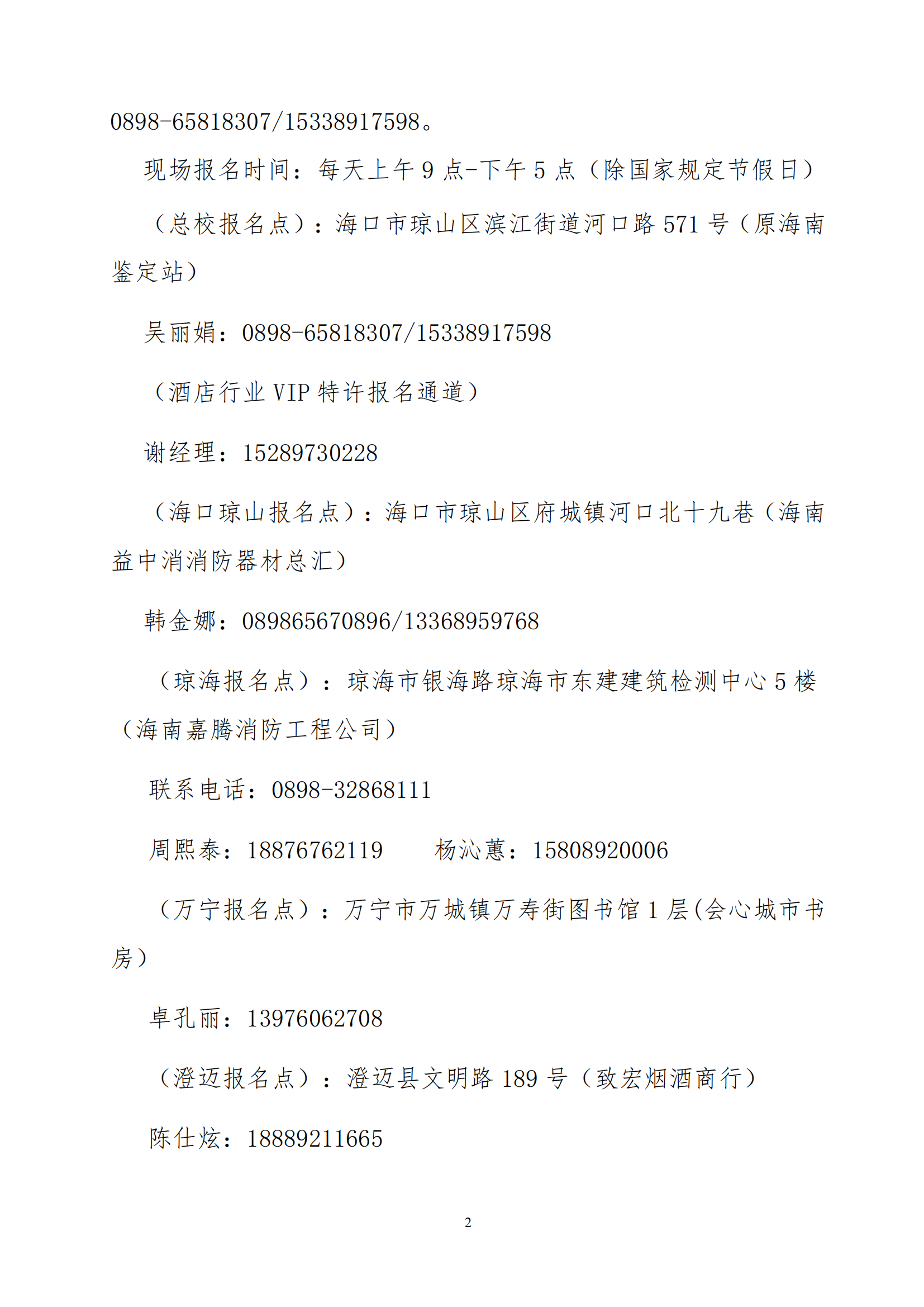 (萬寧報名點):萬寧市萬城鎮(zhèn)萬壽街圖書館1層(會心城市書房)(文昌報名點):文昌市文城鎮(zhèn)文清大道36號(英特消防經(jīng)銷部)(陵水報名點):陵水縣椰林鎮(zhèn)陵保路4號(陵水提蒙安得交通消防器材經(jīng)銷部)