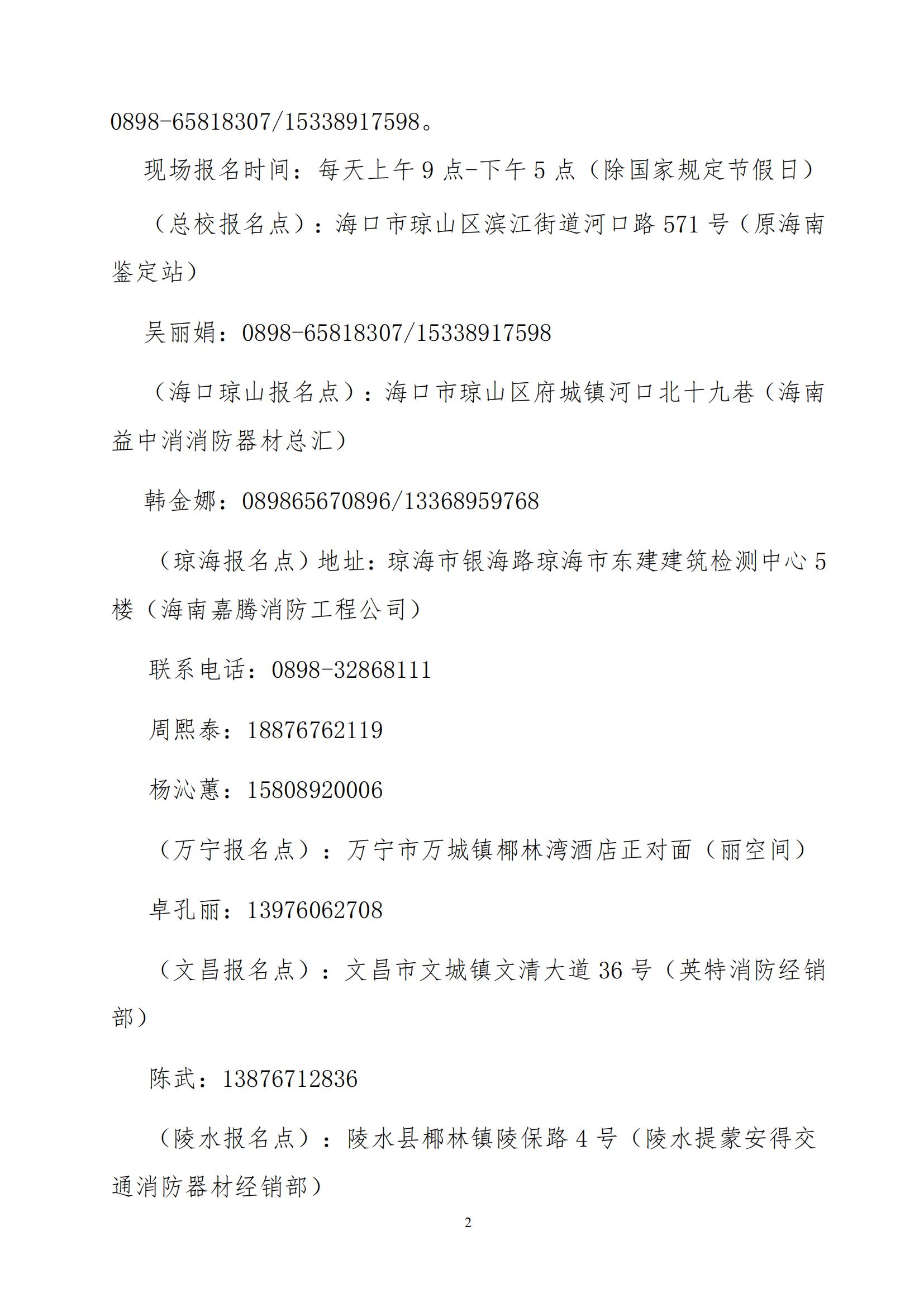 (瓊海報(bào)名點(diǎn))地址:瓊海市銀海路瓊海市東建建筑檢測中心5樓(海南嘉騰消防工程公司)
